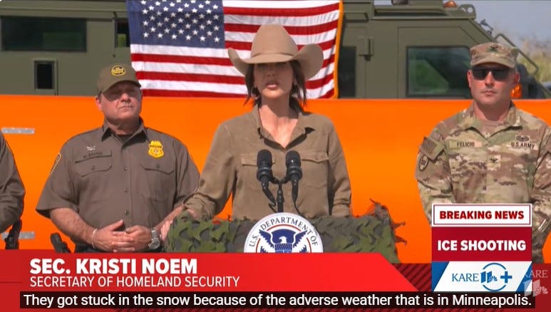 Minutes after Renée Nicole Macklin Good, a 37-year-old US citizen, was fatally shot by a United States Immigration and Customs Enforcement (ICE) agent on January 7th, Kristi Noem took to a Texas stage backed by cops, a colonel, and a flag-draped tactical vehicle. Still in costume from the set of Save a Hoss, …